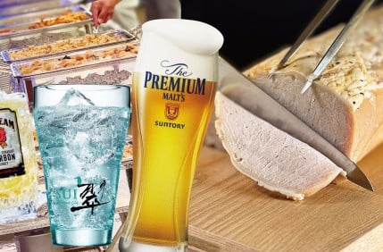 サントリー ザ・プレミアム・モルツ、ジムビームハイボール、サントリースペシャル含む21種類が飲み放題とシェフ自慢のローストポークなど食べ放題をご用意!