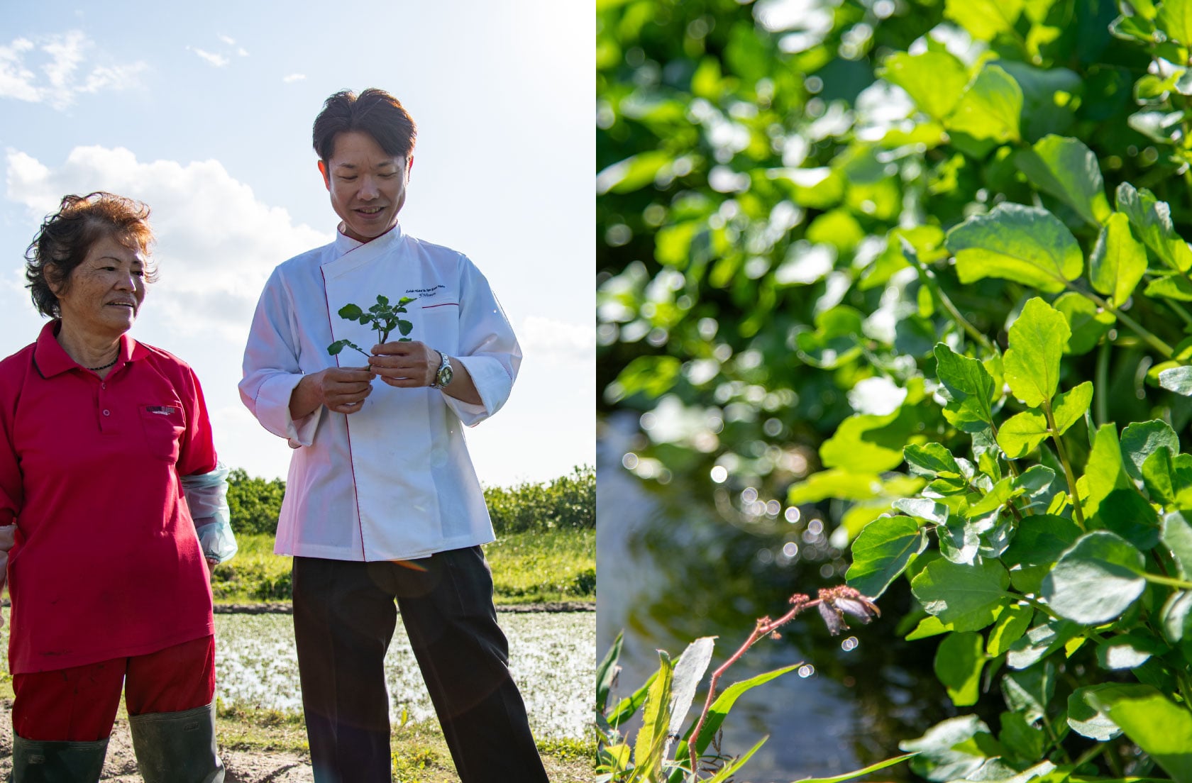 南城市の清らかな水が育てたクレソンは、えぐみが少なく非常にマイルド。爽やかな辛味と清涼感のある香りが、お肉料理の美味しさを引き立てる鮮やかな名脇役です。